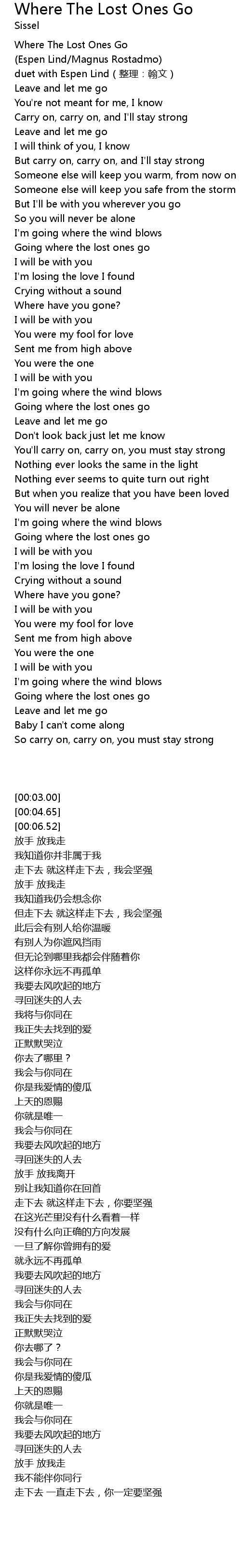 | [00:06.52] | duet with Espen Lind zhěng lǐ: hàn wén |