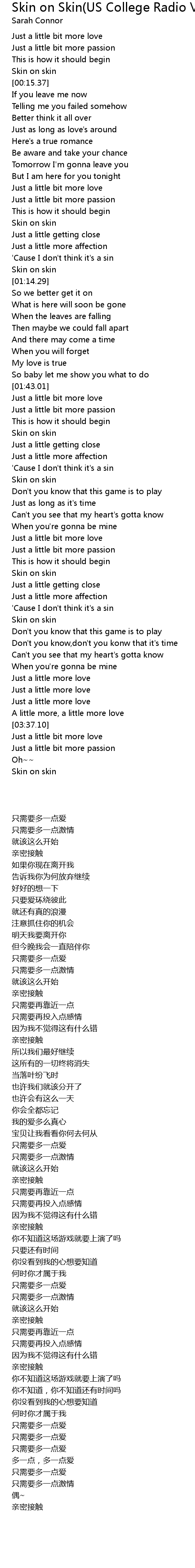 Skin on Skin(US College Radio Version) Lyrics