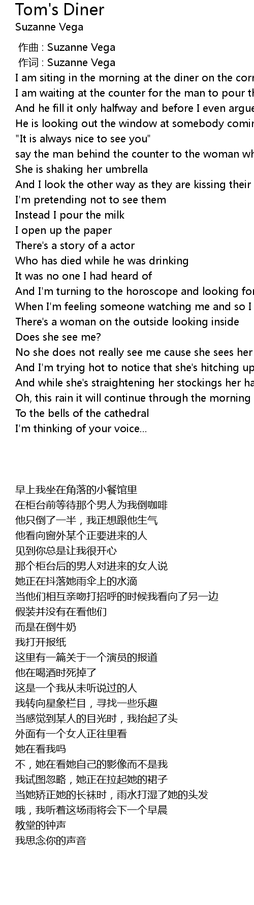 | [00:00.00] | 作曲 : Suzanne Vega |