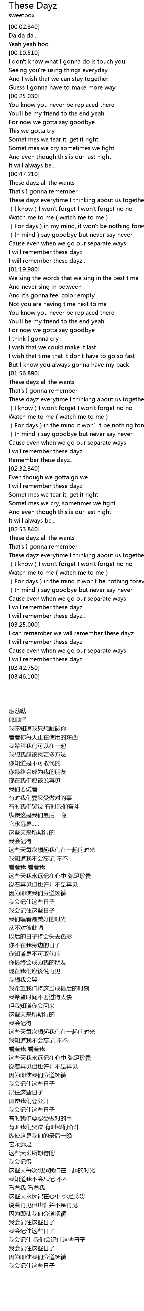 | [00:51.130] | These dayz everytime I thinking about us together |