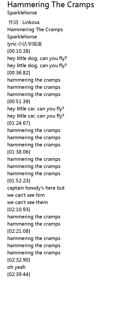 | [01:47.81] | hammering the cramps |