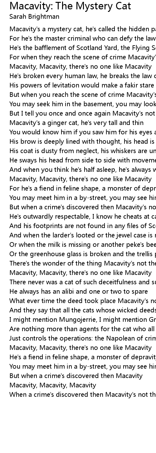 Macavity, Macavity, Macavity |