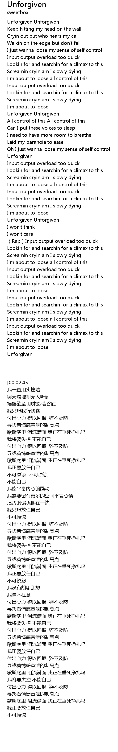 | [00:02.45] | Unforgiven Unforgiven |