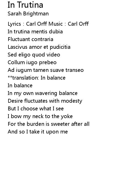 | Lyrics: Carl Orff Music: Carl Orff | |