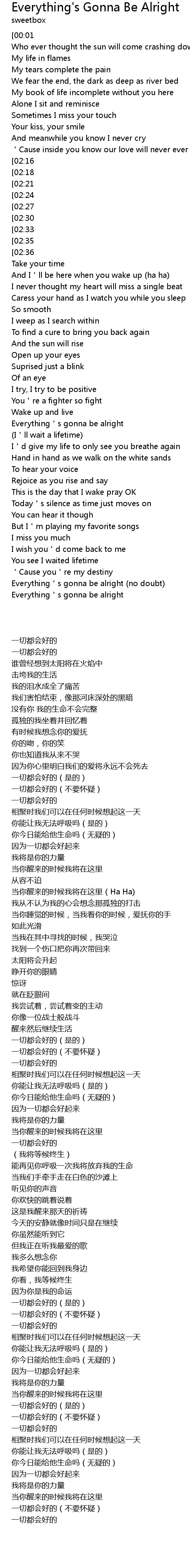 | [02:38][02:16][01:25][00:34] | Everything's gonna be alright (yeah) |
