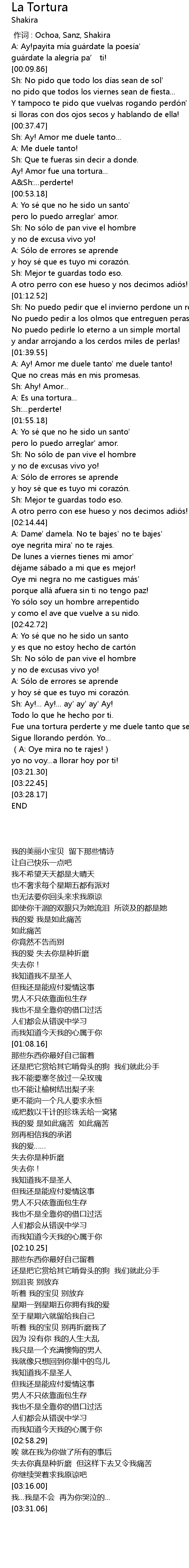 | [00:00.00] | zuo ci : Ochoa, Sanz, Shakira |