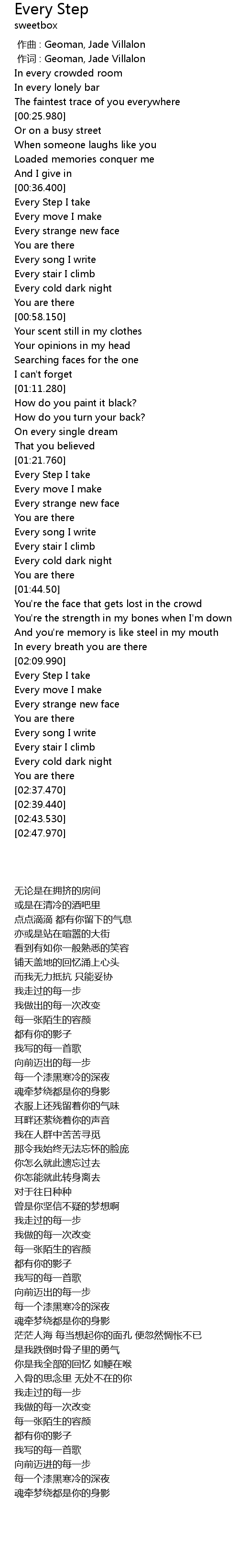 | [02:15.560] | Every Step I take |