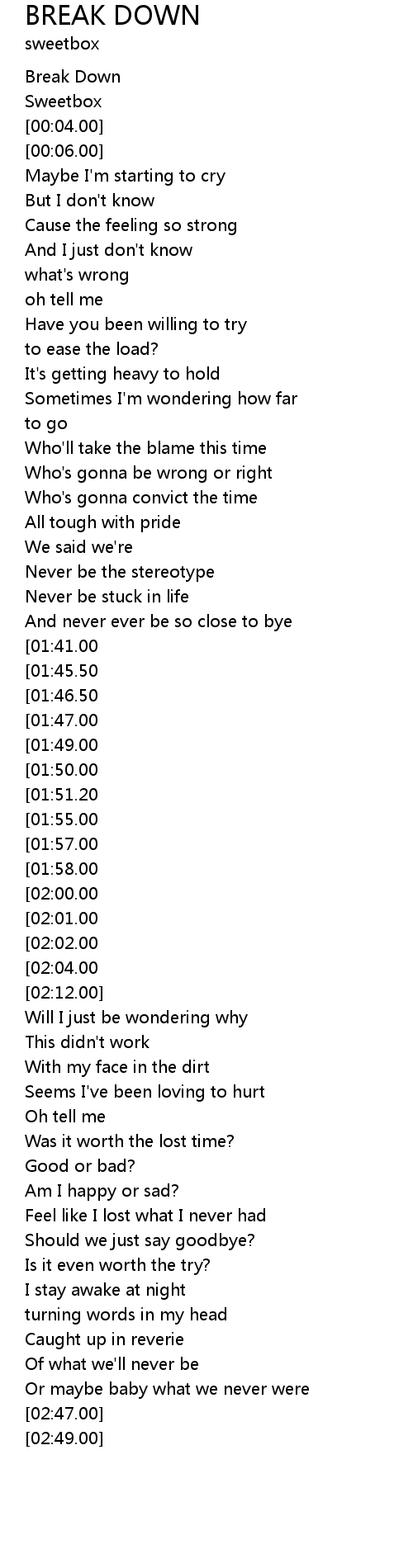 Oh baby, I'm Breaking Down |
