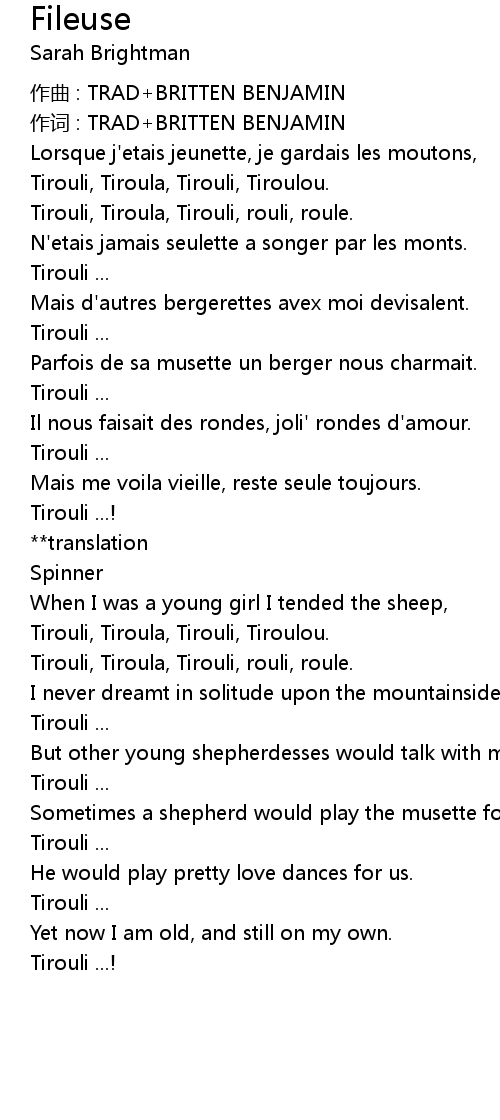| 作词 : TRAD+BRITTEN BENJAMIN | |