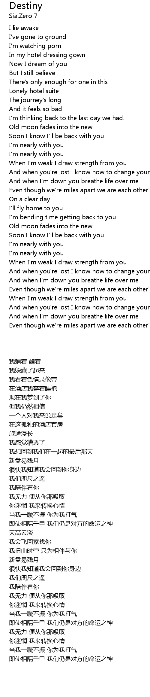 | [02:44] | Even though we're miles apart we are each other's destiny |