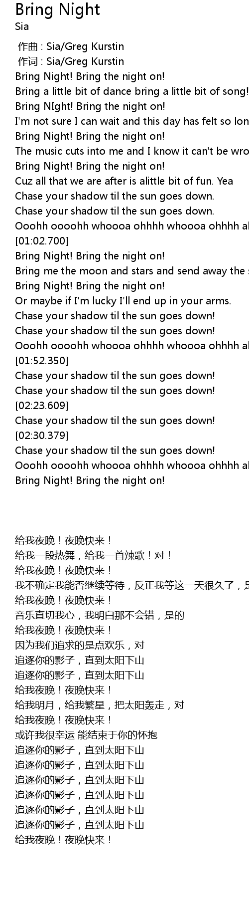 | [00:07.500] | Bring Night! Bring the night on! |