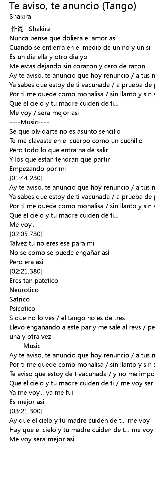 | [03:03.740] | Que el cielo y tu madre cuiden de ti / me voy ser mejor as |