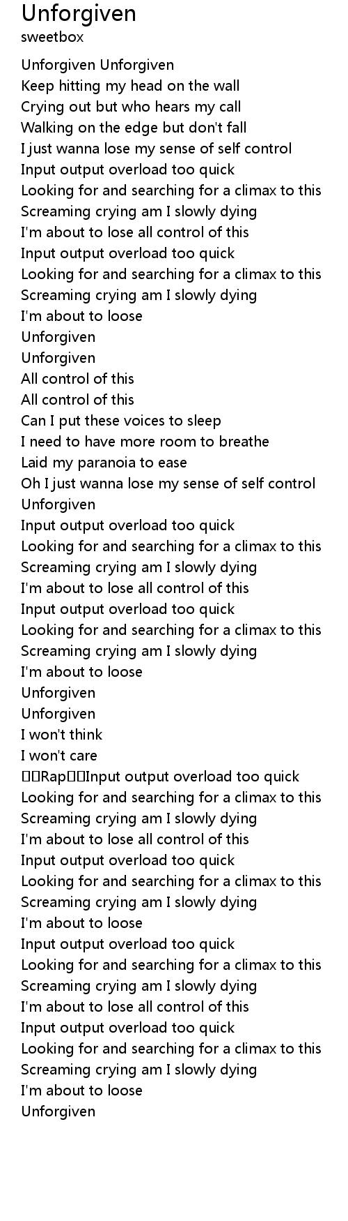 | [01:29.452] | Unforgiven |
