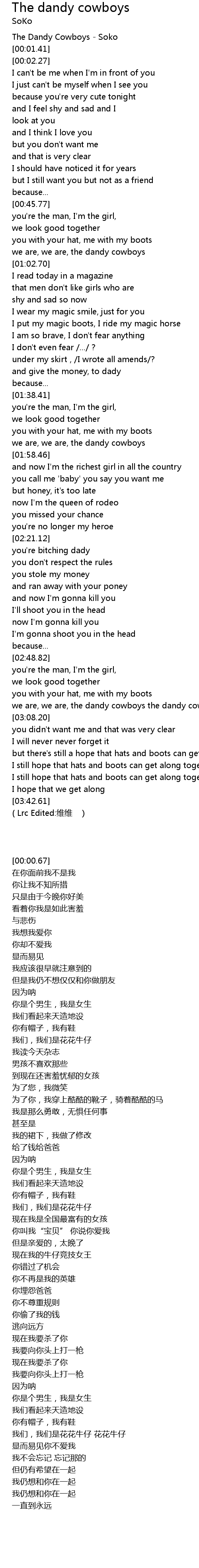 | [00:00.67] | The Dandy Cowboys Soko |