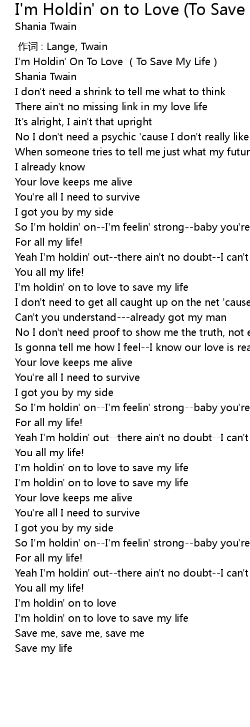 | [02:27.60] | I'm holdin' on to love to save my life |