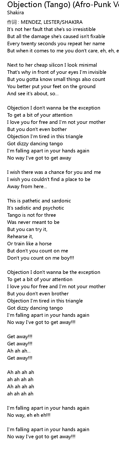 | Song | Objection (Tango) (Afro-Punk Version) |