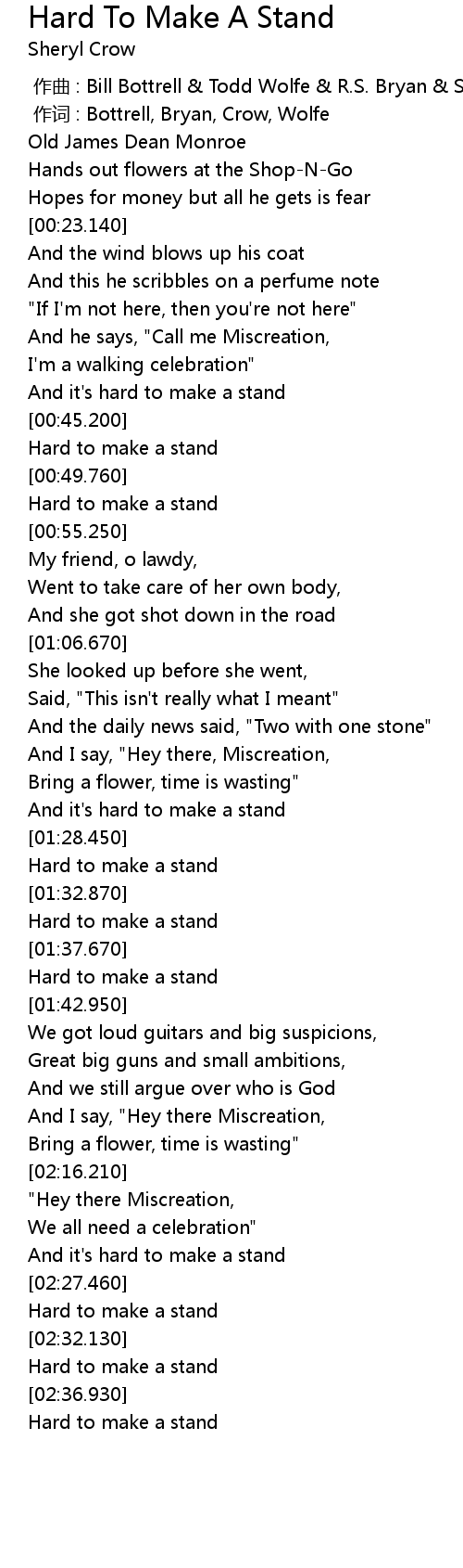 | [00:00.00] | 作曲 : Bill Bottrell & Todd Wolfe & R.S. Bryan & Sheryl Crow |