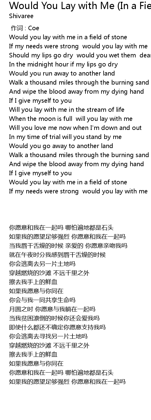 | Song | Would You Lay with Me (In a Field of Stone) |