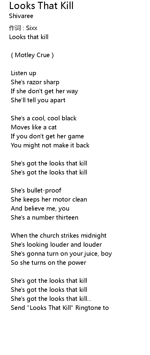 | Send " Looks That Kill" Ringtone to |