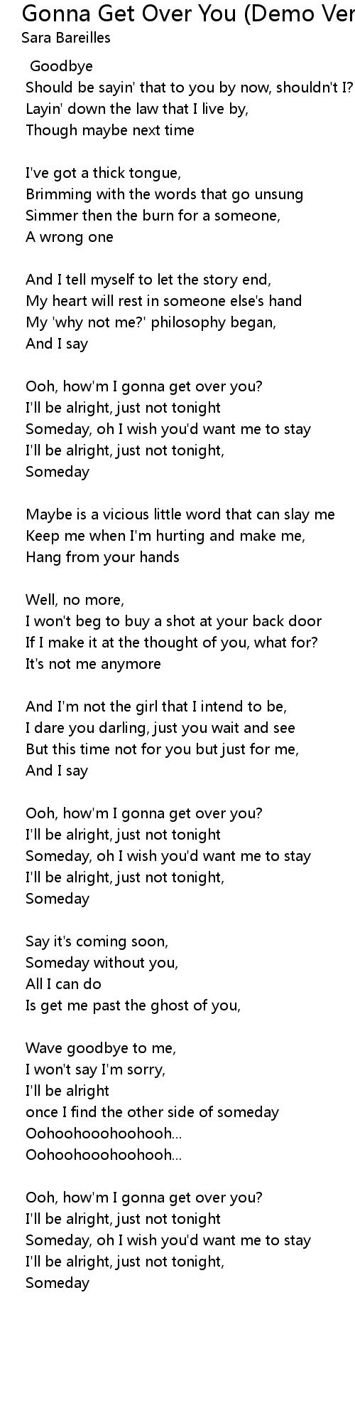 Ooh, how'm I gonna get over you? |