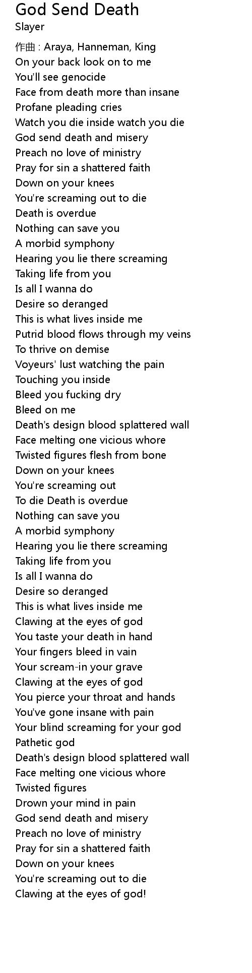 | Song | God Send Death |