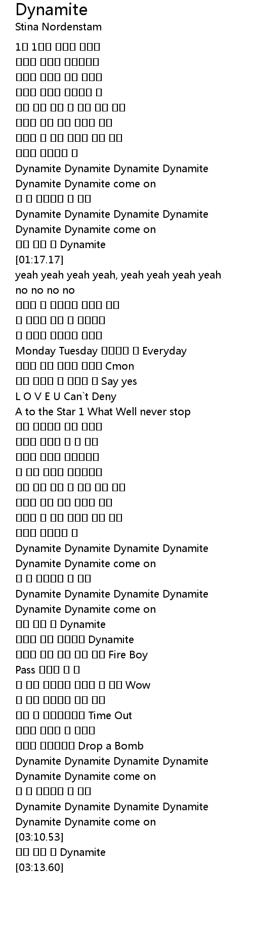 | [03:04.13] | Dynamite Dynamite Dynamite Dynamite |