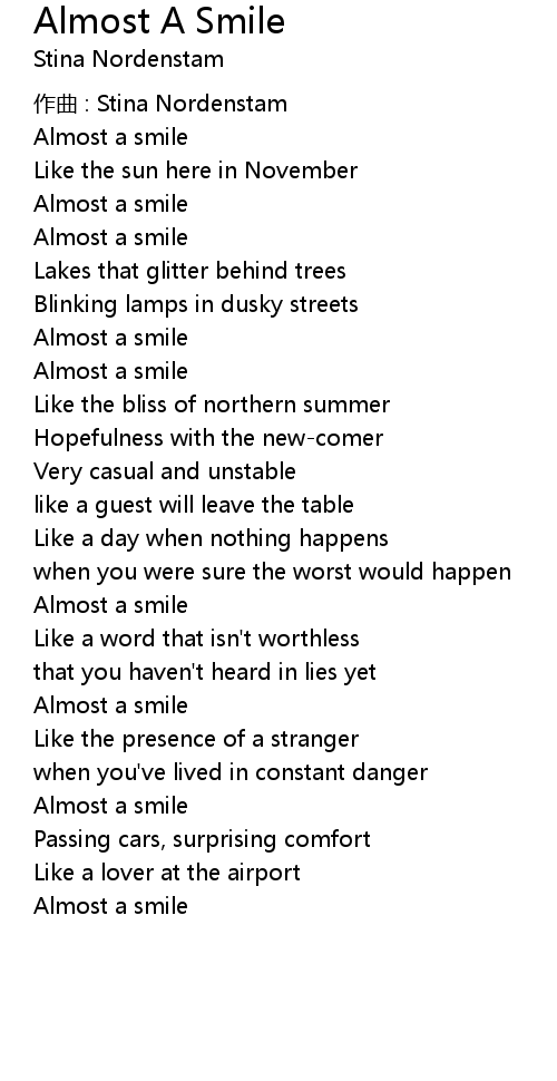 | Song | Almost A Smile |