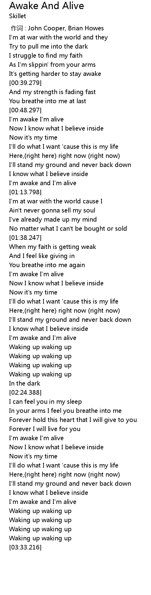 | [02:59.390] | I' m awake I' m alive |