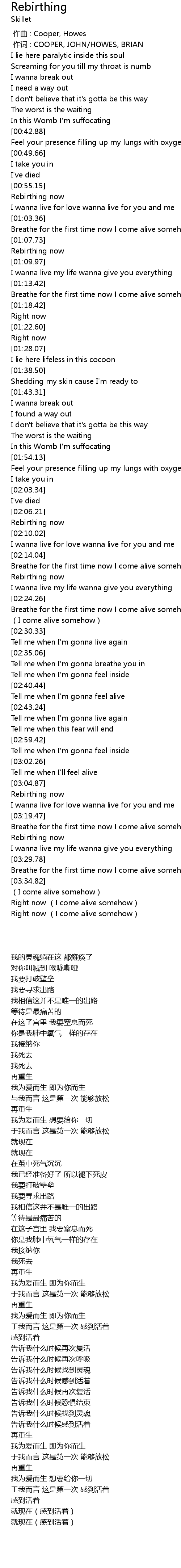 | [03:43.18] | Right now (I come alive somehow) |