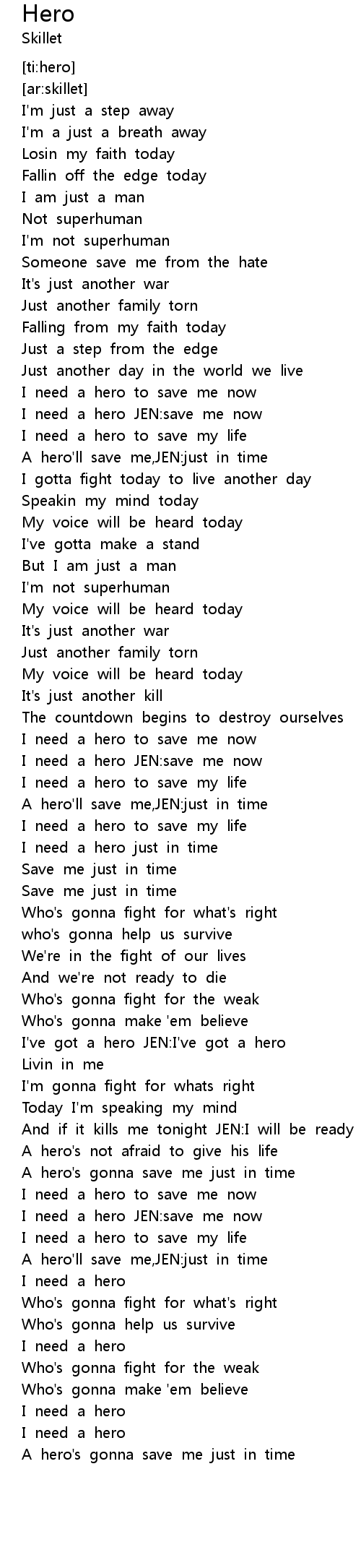 I need a hero just in time |