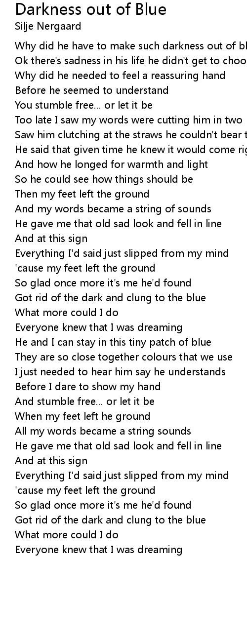Why did he have to make such darkness out of blue |