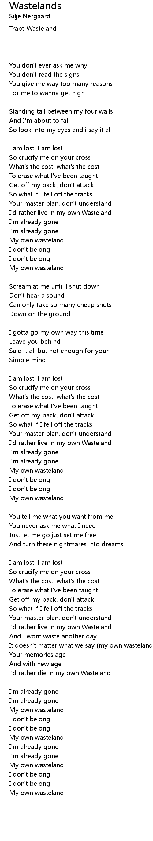 Wastelands Lyrics