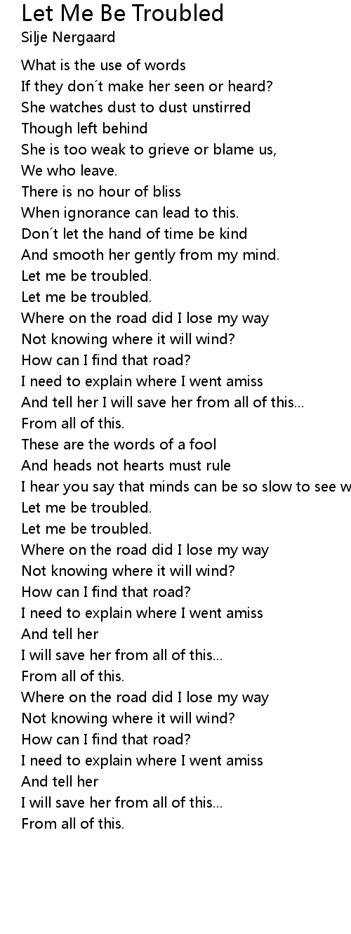 | Song | Let Me Be Troubled |
