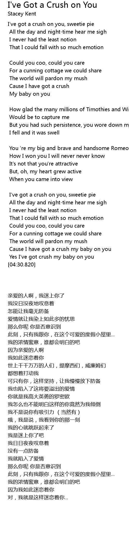 | [04:16.810] | Yes I' ve got crush my baby on you |