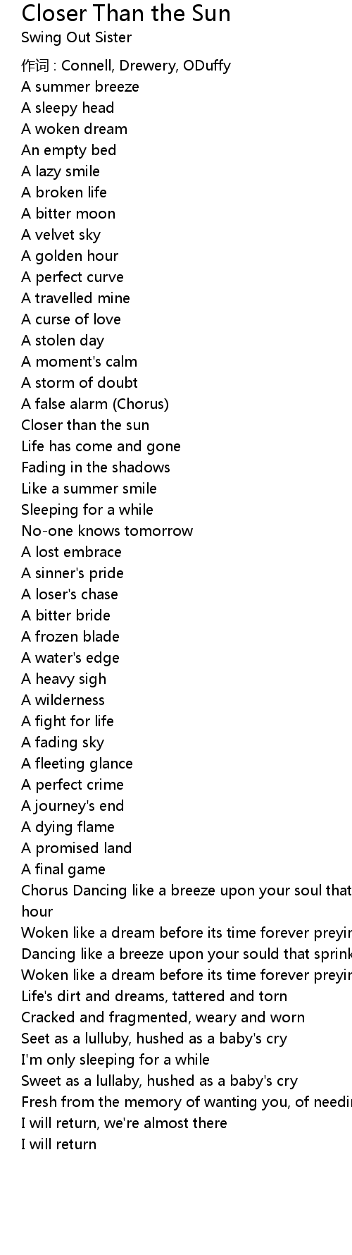 | Chorus Dancing like a breeze upon your soul that sprinkles every single waking hour | |