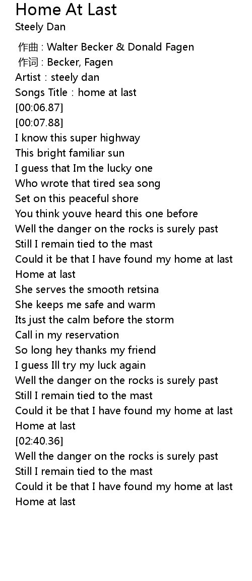 | [00:04.57] | Songs Title:home at last |
