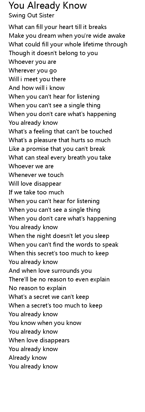 You know when you know |