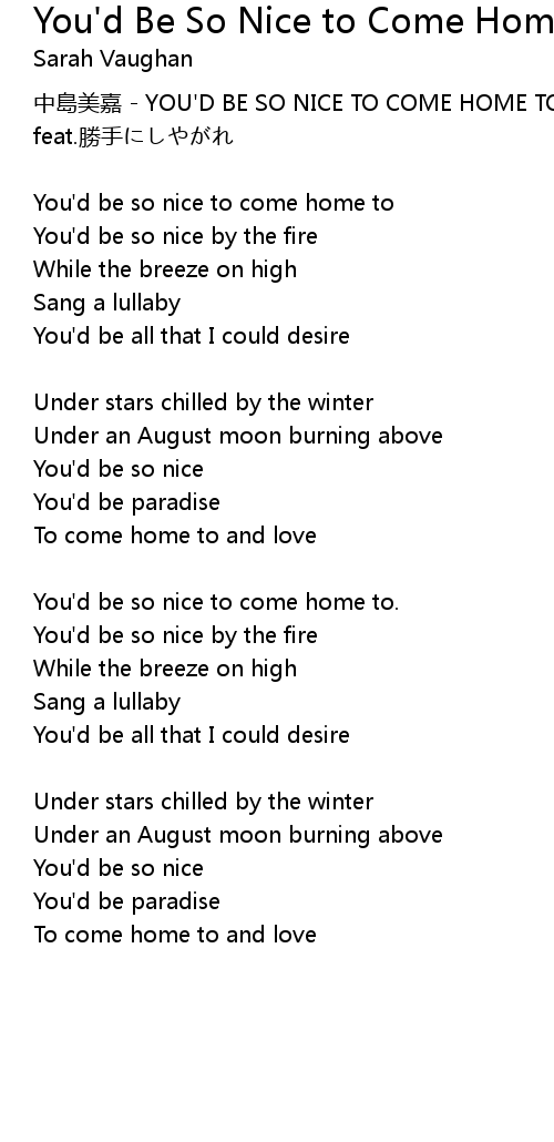 | zhōng dǎo měi jiā YOU' D BE SO NICE TO COME HOME TO | |
