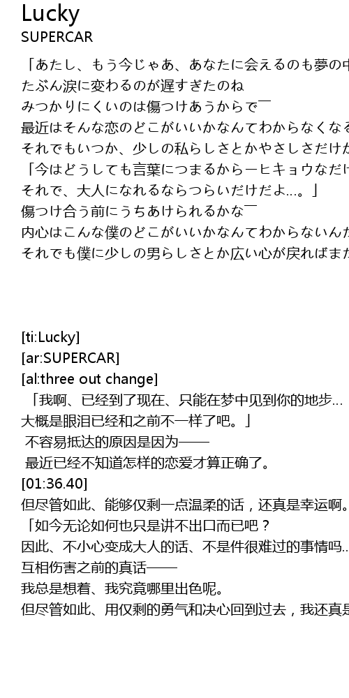 | [01:36.40] | それでもいつか、少しの私らしさとかやさしさだけが残ればまだラッキーなのにね |