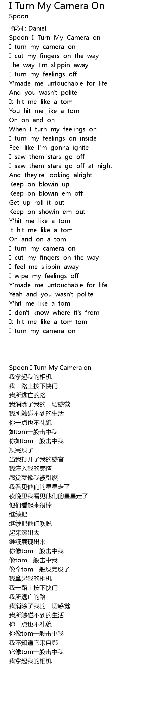 | [00:01.512] | Spoon I Turn My Camera on |