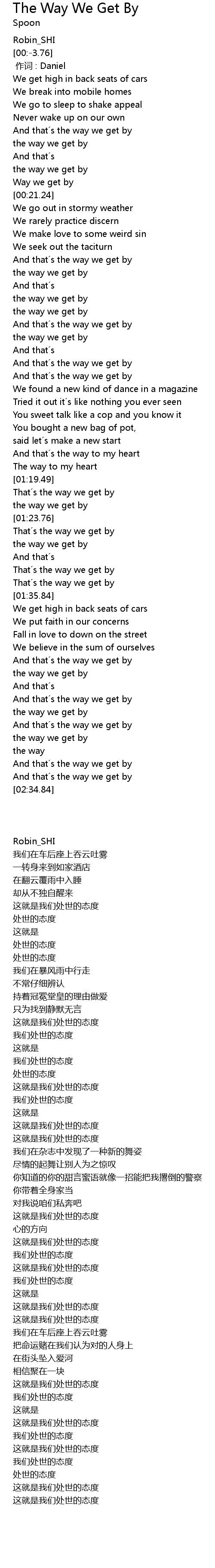 | [01:32.90] | That´s the way we get by |