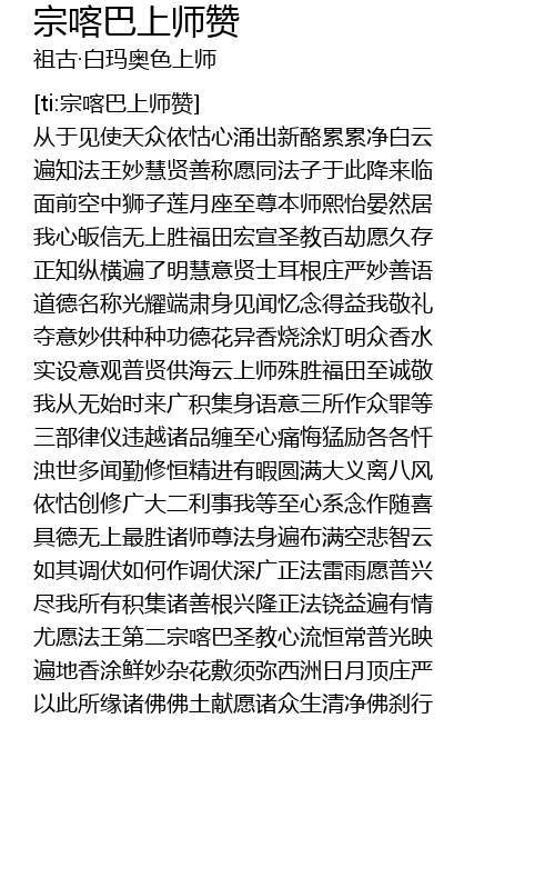 | [03:58.306] | 尤愿法王第二宗喀巴圣教心流恒常普光映 |