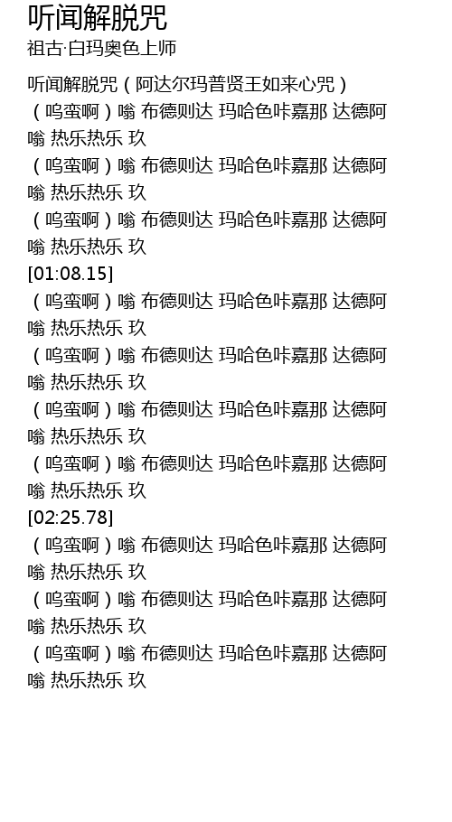 | [01:44.73] | (呜蛮啊)嗡 布德则达 玛哈色咔嘉那 达德阿 |