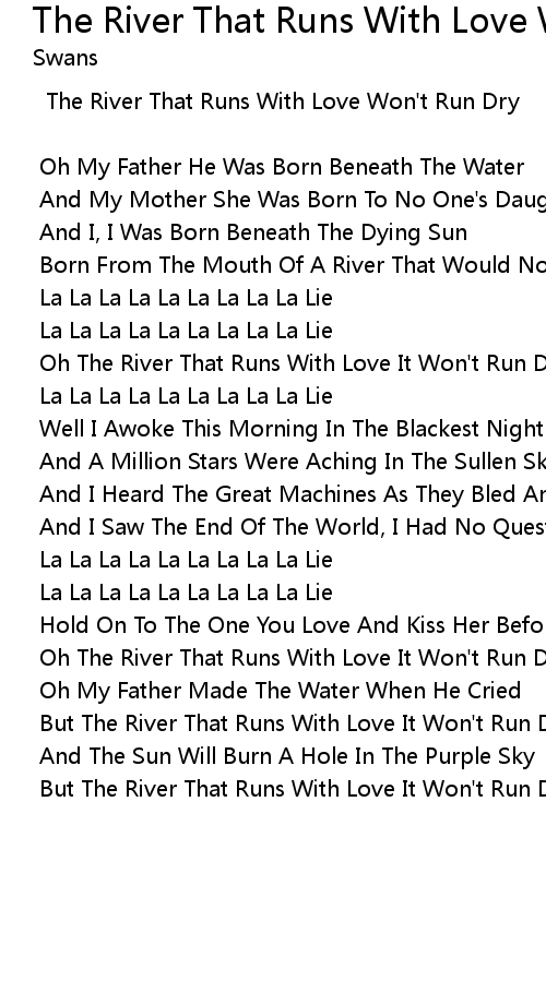 Oh The River That Runs With Love It Won't Run Dry |