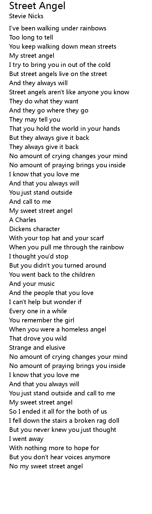 No my sweet street angel |