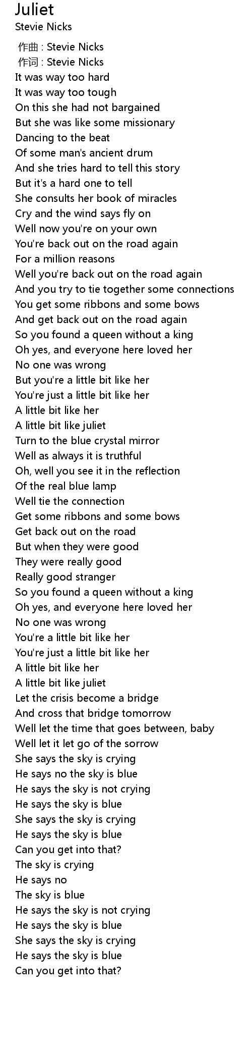 | [00:01.00] | zuò cí : Stevie Nicks |