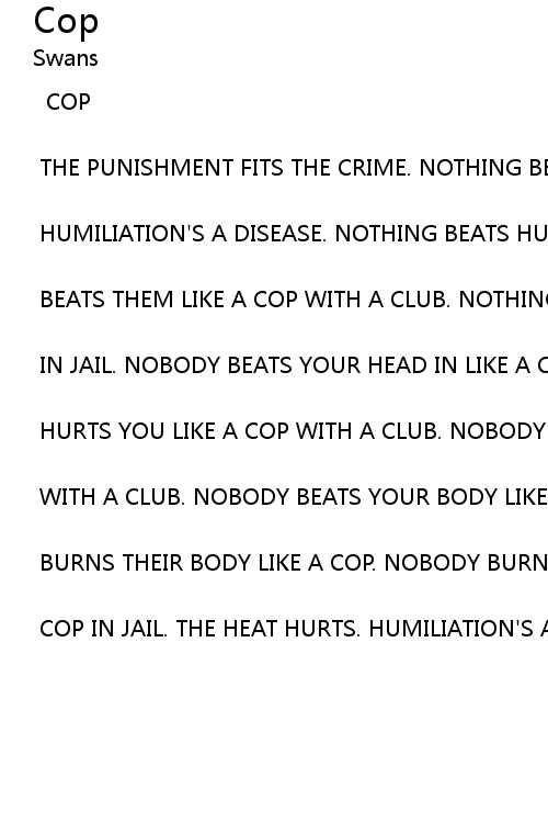 | HURTS YOU LIKE A COP WITH A CLUB. NOBODY RAPES YOU LIKE A COP | |