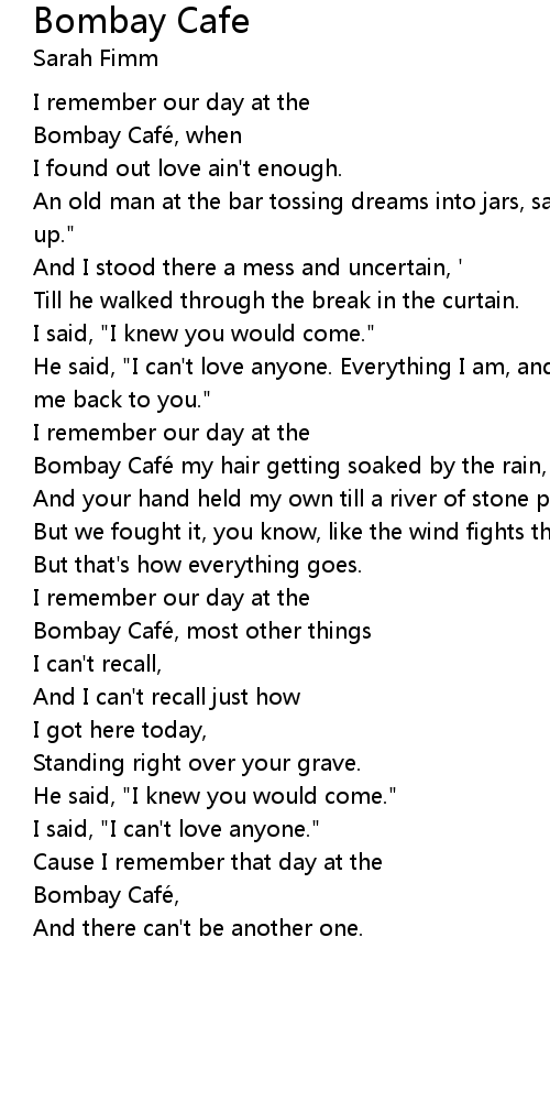 | Song | Bombay Cafe |