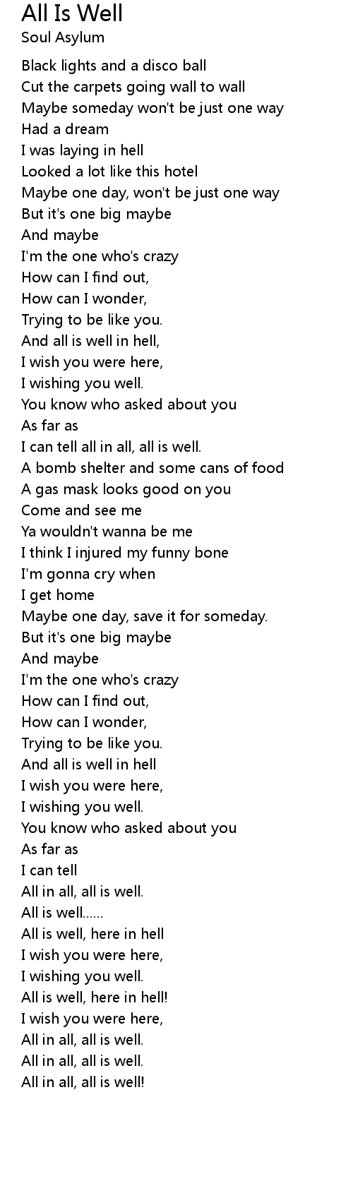 All in all, all is well. |