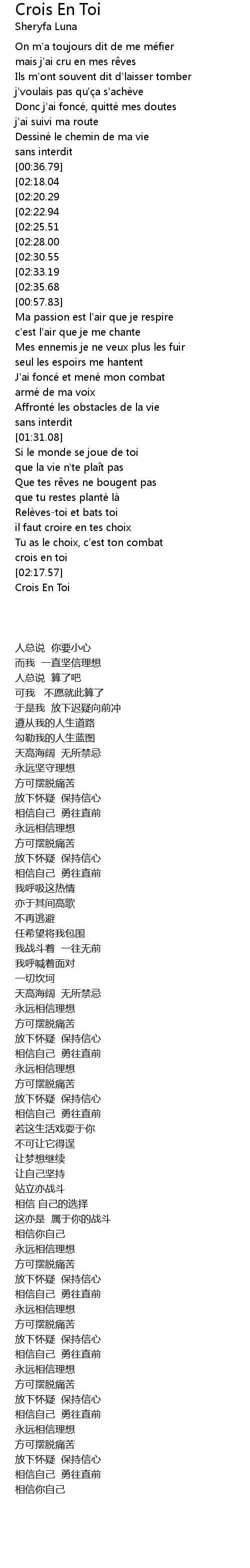 | [02:58.90] | Crois En Toi |